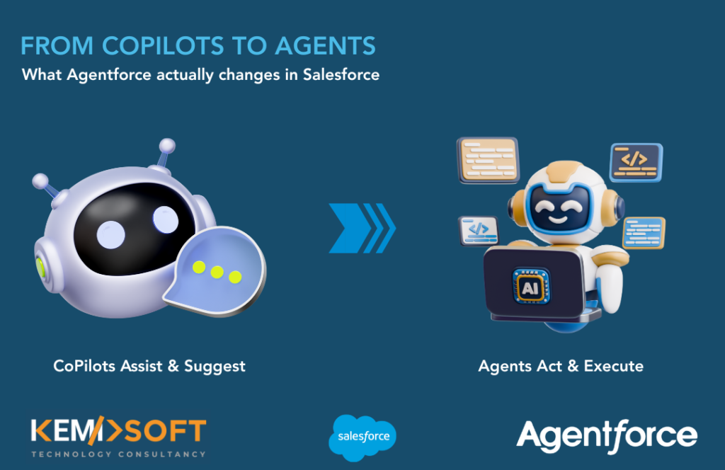 What Agentforce actually changes in Salesforce From Copilots to Agents is more than a shift in terminology. It’s a shift in how work actually gets done inside Salesforce. For the last few years, most AI inside CRM platforms has looked like assistance. You ask a question. You get a response. Useful, but still dependent on […]